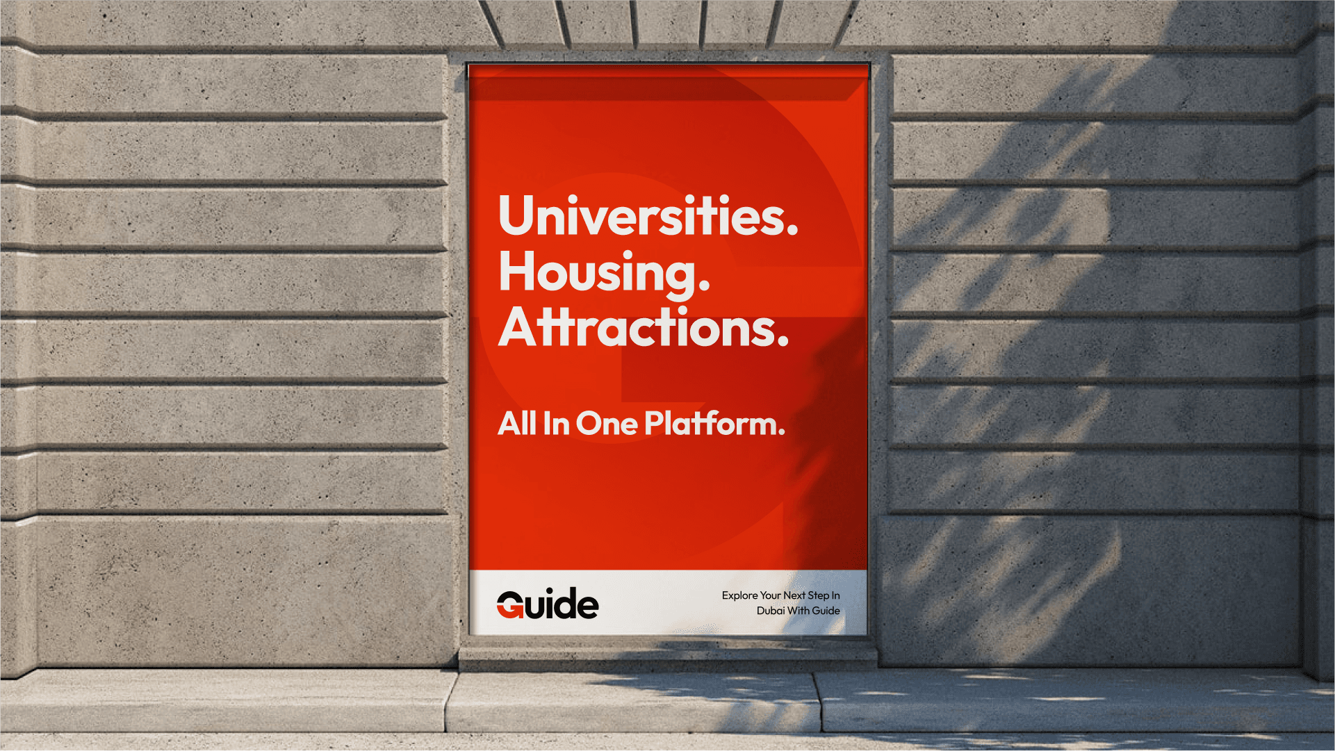The final outcome was a bold yet approachable brand identity that positioned Guide as a reliable partner for international students in Dubai.